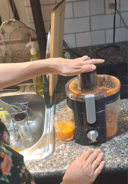 Wide Feeding Chute – Fits larger fruit pieces for faster preparation.